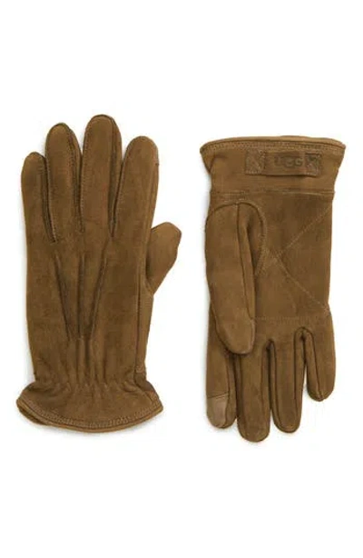 UGG ® Three-point Leather Tech Gloves In Chocolate