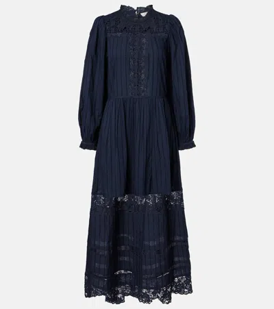 ULLA JOHNSON Amelie Lace And Cotton Midi Dress In Blue