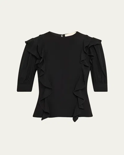 ULLA JOHNSON Carmen Ruffled Short-sleeve Blouse In Black