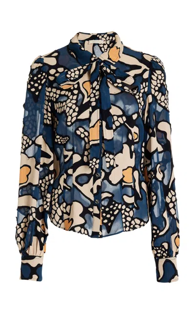 ULLA JOHNSON Hera Devoré Chiffon Shirt In Blue