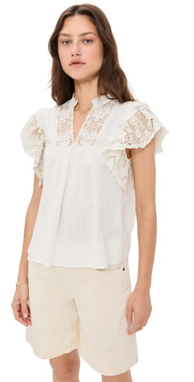ULLA JOHNSON Jolie Flutter Sleeve Top Pristine In White
