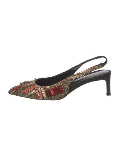 Pre-owned Leather Patterned Slingback Pumps In Multi