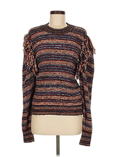 Ulla Johnson Pullover Sweater, Size: Medium. Item Details: Brown, Tweed Pattern, Ruffles Neckline, Long Sleeve, Fringe, Women's Tops, Cotton/Nylon