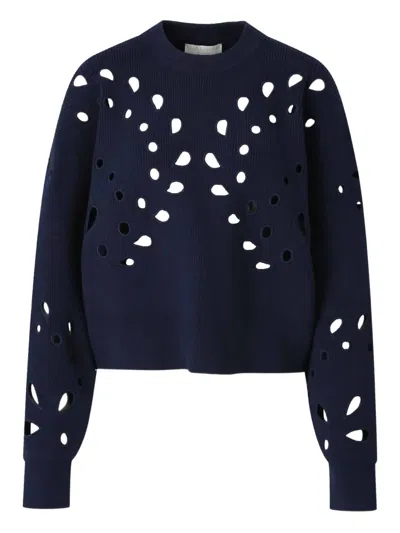 The ultimate go-to sweater, expertly crafted to provide the perfect combination of warmth and style. Its classic design and soft fabric make it a must-have addition to your wardrobe.Experience the elegance of Ulla Johnson's Vanessa Pullover, a sophisticated addition to your fall wardrobe in a refined midnight hue. This long-sleeve sweater is crafted from a blend of 94% cotton, 5% nylon, and 1% spandex, featuring botanical eyelet embroidery reminiscent of vintage Italian lace. The classic crewneck design pairs beautifully with both denim and tailored outfits. Closure - Pull on. Made for the discerning woman with a penchant for preppy trends, this piece is imported and ideal for your holiday parties.