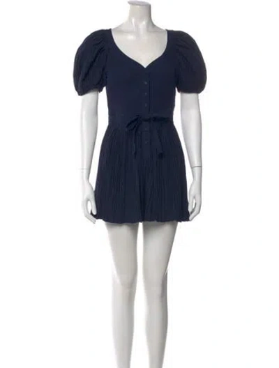 Ulla Johnson Romper Blue Pleated Accents Short Sleeve with V-Neck Button Closure at Front Fit: Jumpsuits and Rompers by Ulla Johnson typically fit true to size. | Ulla Johnson V-Neck Romper in Blue, Women's US 2 | XS