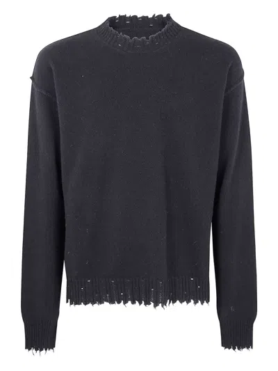 UMA WANG Basic Crew Neck Sweater With Distressed Hem In Blue