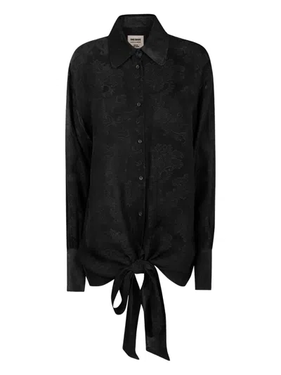 black pattern button fastening tie detail long sleeves