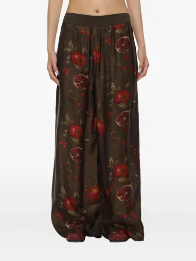 UMA WANG Wide-leg Pansy Pants With Contrasting Pomegranate Design In Brown
