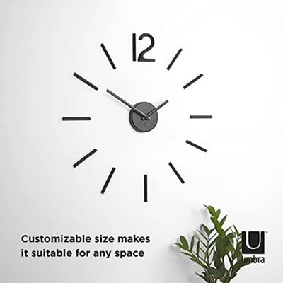 MOUNTED WALL CLOCK - Blink gives you the opportunity to create a unique DIY clock that allows you to get the right amount of scale and impact in your space, the number 12 and indicators mount individually using 3M adhesives MODERN AND VERSATILE CLOCK - Blink is a unique, minimalist take on a clock thanks to its simple black metal indicators and DIY approach ALL UMBRA CLOCKS ARE TESTED IN-HOUSE - Inside our factories is a wall where every single one of our clocks is tested to make sure it ticks j
