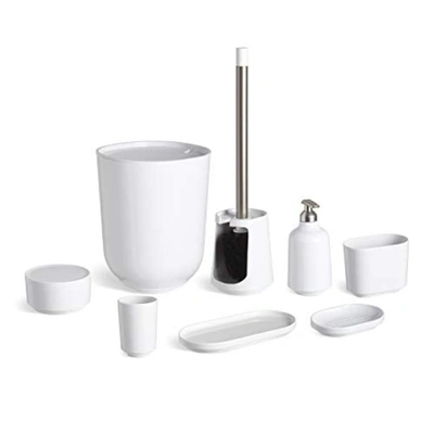 Umbra Step Dish for Bathroom-Contemporary, Practical Molded Oval Soap Bar Holder for Bath Sink-Nicely Fits Into Amenity Tray-Easy to Clean, Highly Durable, White BEAUTIFUL BATHROOM ACCESSORY - One of the things you’ll immediately notice about Step Soap Dish is its gorgeous glossy finish, which is both subtly pretty and sleek, making it a versatile accessory for your washroom, laundry room, or kitchen RIDGE DETAILING - Step features a ridge detailing which will allow your bar of soap to dry quickly and stay dry instead of pooling in stale water DURABLE AND ELEGANT - Made of melamine, which is low-risk for breakage, Step is ideal for a busy households with high-volume traffic DESIGNED BY TOM CHUNG FOR UMBRA - This modern soap dish is part of the Step Collection of bath accessories; color options include black and white. BOTTOM DETAIL - Step’s bottom has a detail that elevates the main body of the piece from the surface it sits on The contemporary Step collection of bathroom accessories by Umbra features a step detail on the bottom of each piece which gives the illusion of levitation above the surface that it is sitting on. The pieces are constructed of durable, easy-to-clean melamine and are available in a modern color palette that adds a stylish splash to your bathroom. This low-profile soap dish is ridged inside for drainage so soap lasts longer. Measures 5-3/4 Inch by 1 Inch by 4 Inch. Designed by Tom Chung for Umbra- original, modern, casual, functional and affordable design for the home.