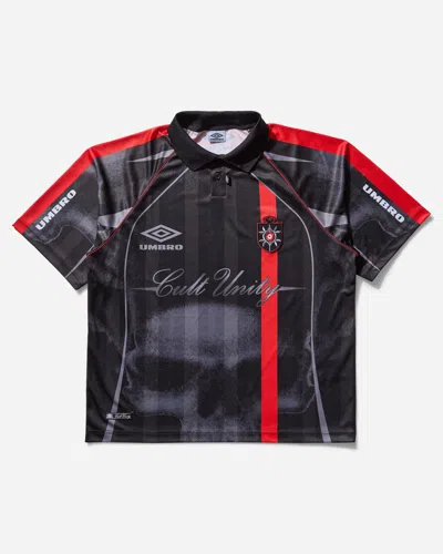 Umbro Umbro x Slam Jam 01 03 Polo Umbro x Slam Jam collaboration Lightweight polyester exterior Loose fit Co-branded graphic printed Classic collar Buttoned placket with logo label Raglan shoulders Short sleeves Rose crest embroidery on the chest Straight hem Color: Black / Red