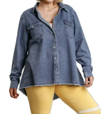UMGEE Button Down Denim Shacket - Plus In Blue