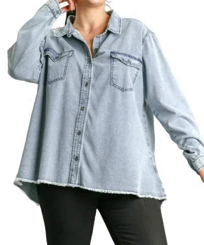 UMGEE Button Down Shacket - Plus In Light Denim In Blue