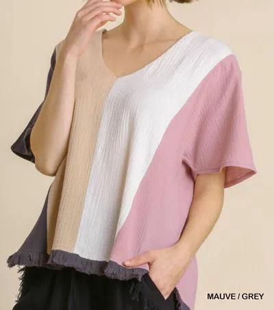 UMGEE Color Block Gauze Top In Mauve & Grey In Multi