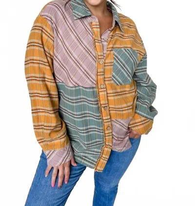 UMGEE Mixed Color Flannel Button Down Top In Multicolor