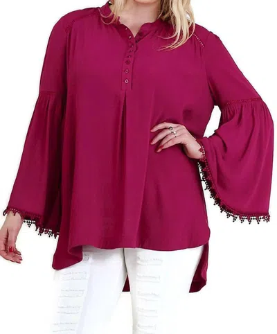 UMGEE Popover Trumpet Sleeve Blouse In Raspberry In Multi