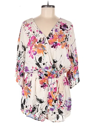 Umgee Romper, Size: Medium. Item Details: Ivory, Floral Pattern, V-Neck, 3/4 Sleeve, Women's Dresses, 100% Rayon