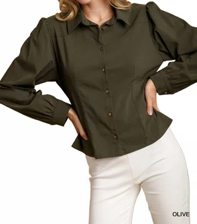 UMGEE Solid Collared Button Down Shirt In Olive In Green