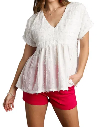 UMGEE Textured Babydoll Top In White