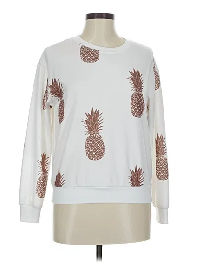 Unbranded Sweatshirt, Size: Medium. Item Details: White, Tropical Pattern, Crew Neck, Long Sleeve, Print, Women's Tops, Polyester/Elastane