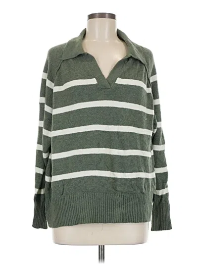 Uncharted Threads Pullover Sweater, Size: Medium. Item Details: Green, Stripes Pattern, Collared Neckline, Long Sleeve, Women's Tops