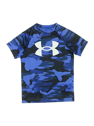 Under Armour Active T Shirt, Size: Medium. Item Details: Blue, Camo Pattern, Mock Neckline, Short Sleeve, Girls Sporting & Activewear, 100% Polyester