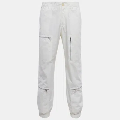 These Undercover cargo pants are made from white cotton with zip pockets placed along the legs for a sharp modern look. The relaxed shape and gathered hems keep them comfortable while still feeling considered.