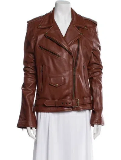 Understated Leather Leather Biker Jacket Brown Pointed Collar Zip Pockets & Zip Closure Fit: Jackets by Understated Leather typically fit true to size. | Understated Leather Leather Biker Jacket in Brown, Women's L