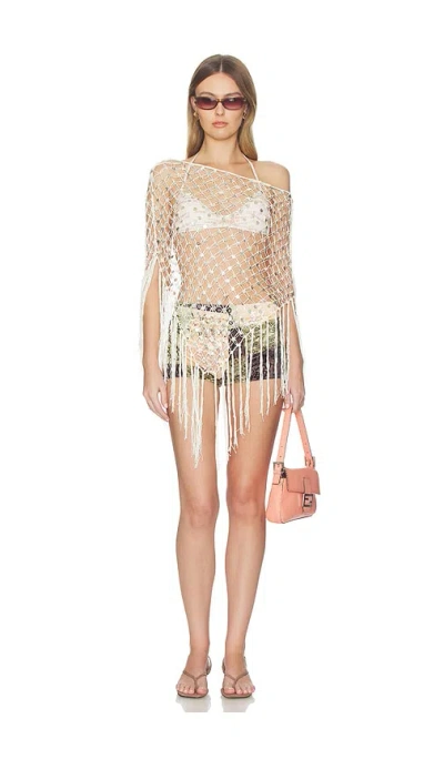 Understated Leather Mountain Strings Poncho in White. Understated Leather Mountain Strings Poncho in White. Knit textile. Imported. Hand wash recommended. Pull-on styling. Lightweight crochet-knit beaded fabric. Dangling tassel hem detail. Garment is intentionally sheer, undergarments will show through. Please note undergarment not included. UNDR-WK17. MOUNTAIN STRINGS PONCHO. Born from love, in a town called Austin. Understated Leather believes that the style and quality of their pieces should speak for the brand, not the other way around. Coined by its name, the unpretentious intention of the brand is to focus on the wearer. Owner Jennifer Kassell fuses her Australian roots with her Texan lifestyle creating a refreshing & relatable Aussie-Americana vibe.
