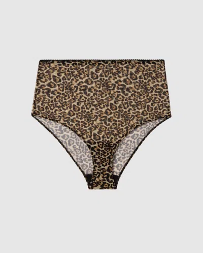 High-waisted briefs made of sheer printed mesh. * Crafted from eco-friendly Recycled Mesh, featuring 89% recycled fiber * Printed with a custom Leopard pattern * High-rise briefs with full bum coverage for a flattering fit * Picot elastic along the waist * Thin elastics along the leg openings * Soft silicon care label = no itchy tags