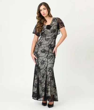 UNIQUE VINTAGE 1930s Flutter Sleeve Gown In Black