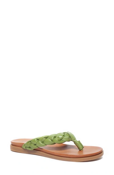 Braided vamp straps and a center toe post lend timeless style to a leather flip flop grounded by a cushioned footbed for lasting comfort.