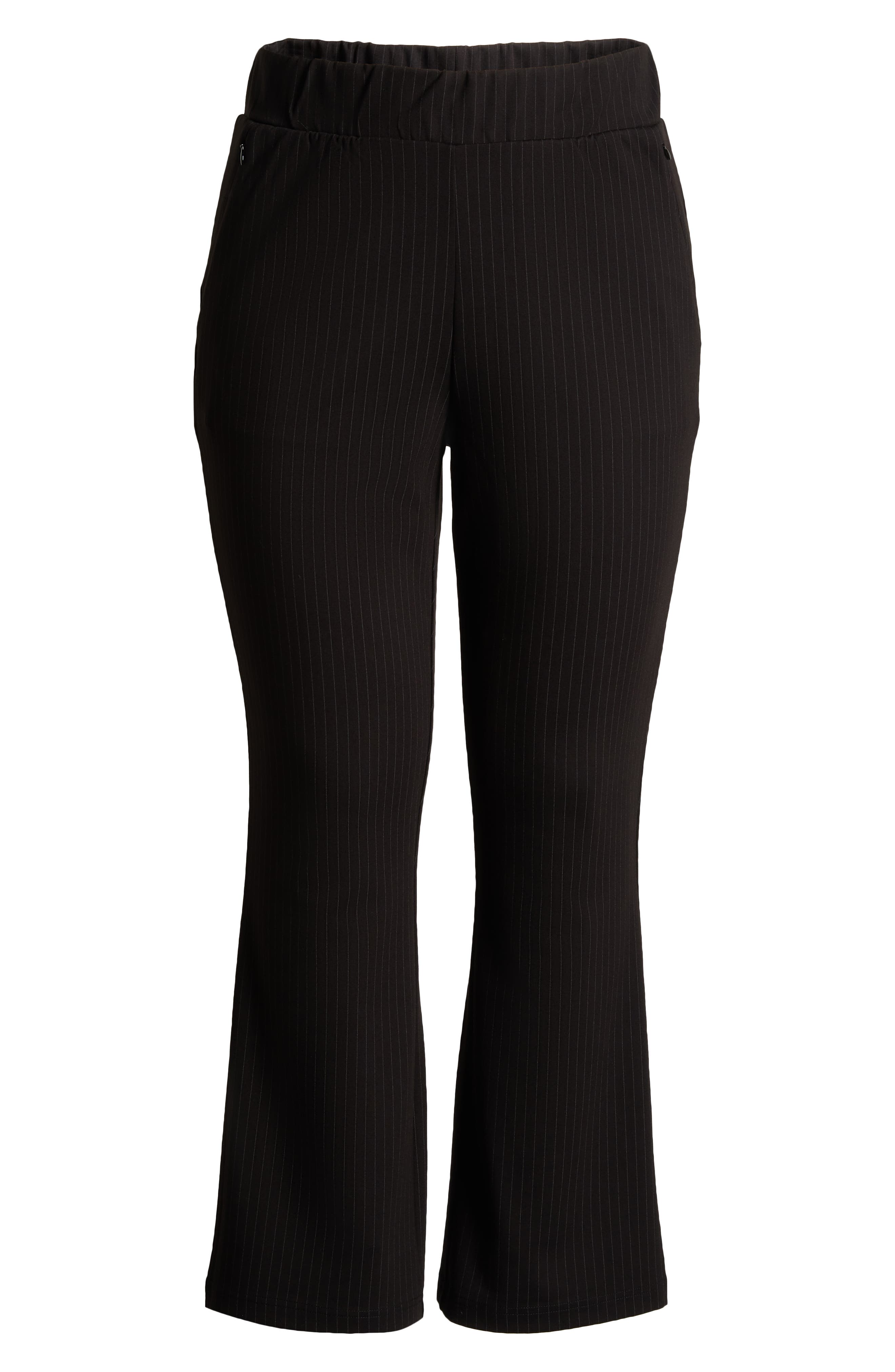 Elevate your workwear wardrobe with these ponte bootcut pants made from stretch-enhanced ponte and finished with classic pinstripes. 30" inseam; 9 1/2" leg opening; 11 1/4" front rise; 16" back rise Elastic waist Front zip pants 60% rayon, 35% nylon, 5% elastane Machine wash, dry flat Imported