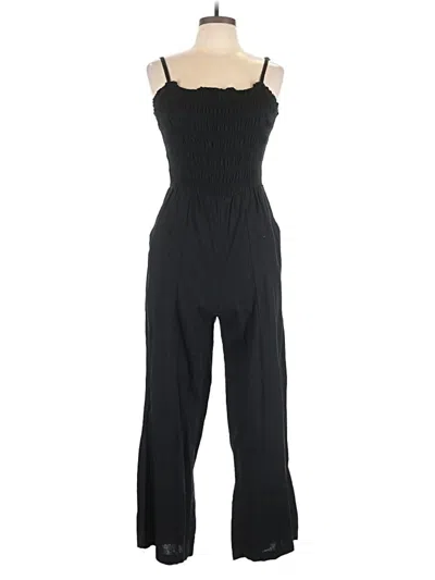 Universal Thread Jumpsuit, Size: Medium. Item Details: Black, Solid Pattern, Square Neckline, Sleeveless, Ruched, Women's Dresses, Linen/Rayon