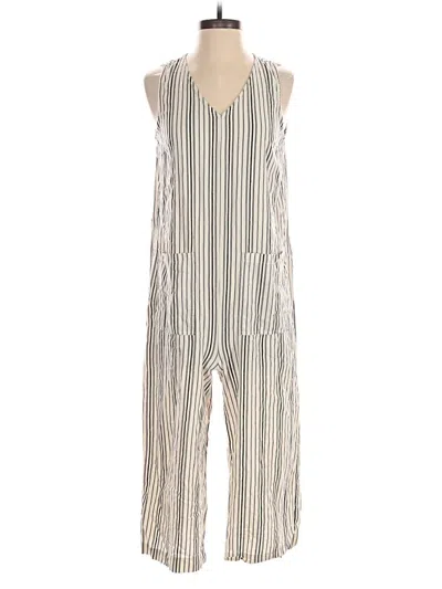 Universal Thread Jumpsuit, Size: Small. Item Details: Ivory, Stripes Pattern, Crew Neck, Straight Leg, Sleeveless, Frayed Edges, Women's Dresses