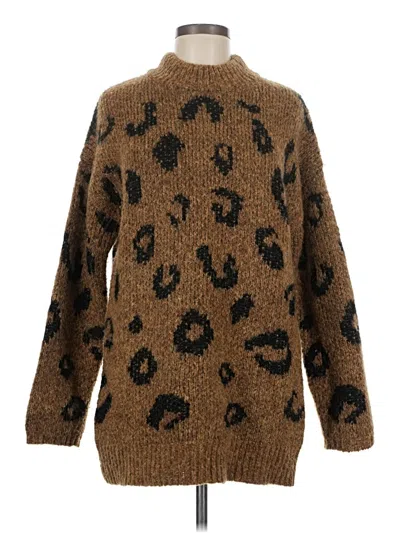 Universal Thread Pullover Sweater, Size: Medium. Item Details: Brown, Animal Print Pattern, Mock Neckline, Long Sleeve, Women's Tops, Acrylic/Polyester/Polyester