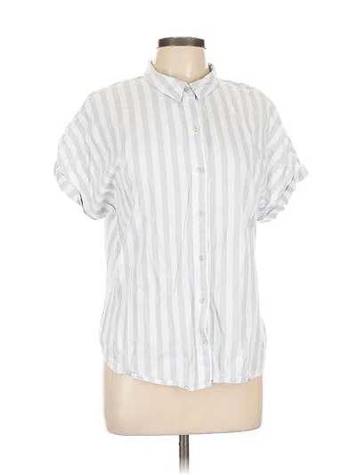 Universal Thread Short Sleeve Blouse, Size: Large. Item Details: White, Stripes Pattern, Collared Neckline, Women's Tops