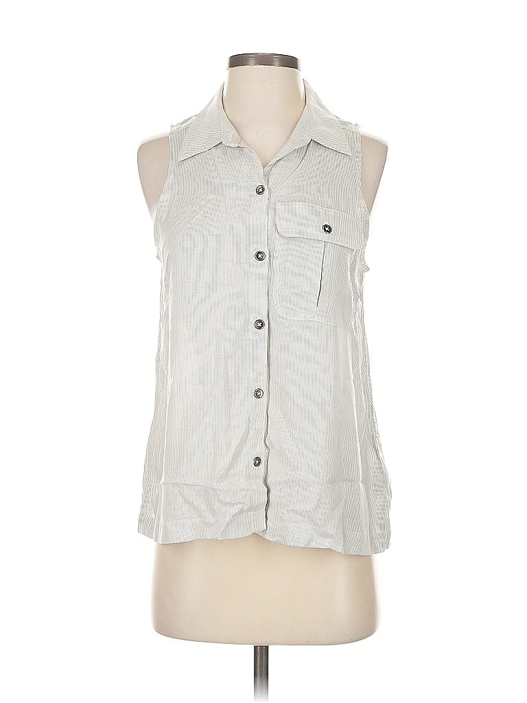 Pre-owned Sleeveless Button Down Shirt In Gray