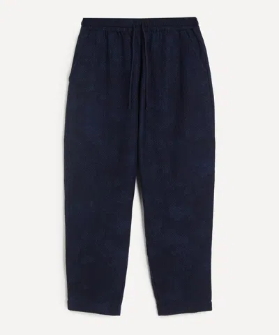 UNIVERSAL WORKS Mens Black-indigo Denim Camo Braga Trousers In Blue