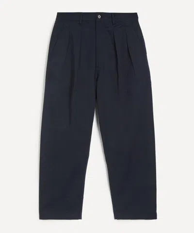 UNIVERSAL WORKS Mens Navy Twill Double-pleat Trousers In Blue