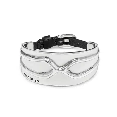 UNODE50 Patterned Leather Buckle Cuff In Silver