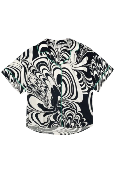 Relaxed oversize fit top with dropped shoulder and wide, easy sleeve. Traditional notched collar with piping at the placket and cuffs. Slightly oversize fit Emma is 5' 7” and wears size Small Laura is 5' 9” and wears size Small Front button placket French seams Rounded hem and shell buttons Eco Dry Clean recommended or machine wash cold with like colors 61% TENCEL™ Lyocell Luxe / 39% TENCEL™ Lyocell Biodegradable