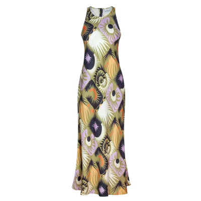 The Lanelle dress is a flowy long midi dress. It's a flattering body-skimming style that falls beautifully. An elegant, easy style. This product was created using Certified Sustainable Materials Fits true to size Ingrid is 5'10" and wears size Small Cut on bias Hidden zipper Long midi dress Sleeveless Custom hand painted print Alchemia Green Eco Dry Clean recommended or machine wash cold with like colors 50% Linen / 50% TENCEL™ Vegan Biodegradable