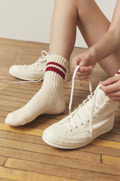 URBAN OUTFITTERS Athletic Striped Scrunch Crew Sock In Cream/red Stripe, Women's At