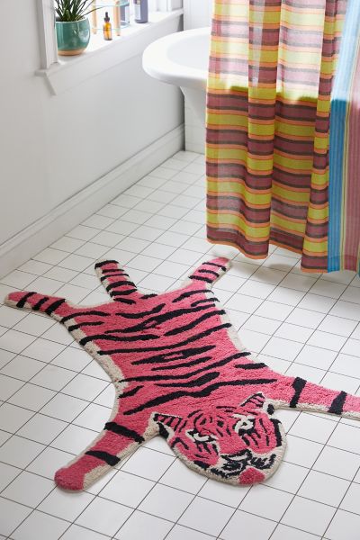 Take a walk on the wild side by turning your bathroom into a jungle with this tiger-shaped bath mat. Shaped like a li'l tiger in a fluffy, tufted cotton that's so soft on feet when you're stepping out of the shower. We also love it used around your space as a fun area rug. Available exclusively at Urban Outfitters. Features Tufted bath mat from UO Home Features a tiger silhouette Versatile - use it as a bath mat or playful area rug UO exclusive Content + Care 100% Cotton Machine wash Imported Size Dimensions: 35" l x 48" w Tiger Bath Mat in Pink at Urban Outfitters