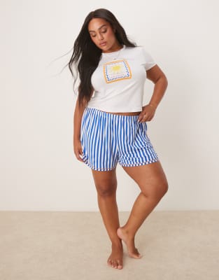 URBAN THREADS Curve Oversized Pajama Shorts With Stripe Print - Part Of A Set-multi
