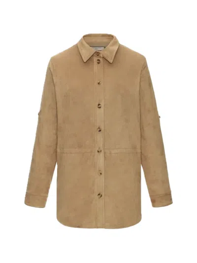 beige button fastening long sleeves point collar chest flap pocket straight hem