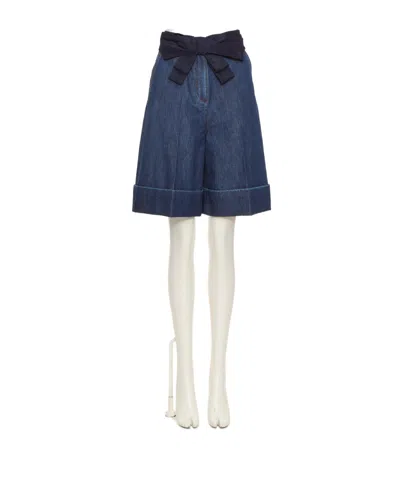 VALENTINO Garavani Denim Bermuda Shorts With Oversized Bow In Blue