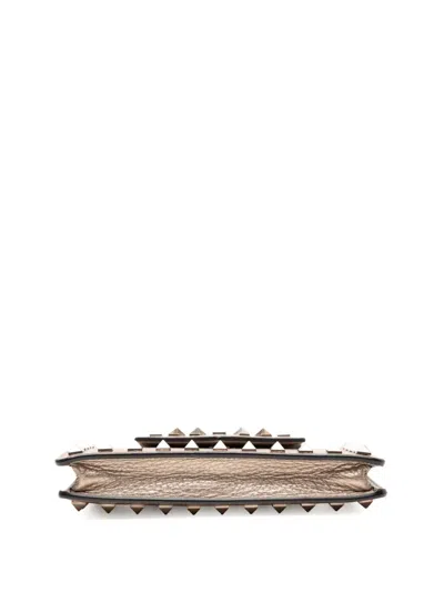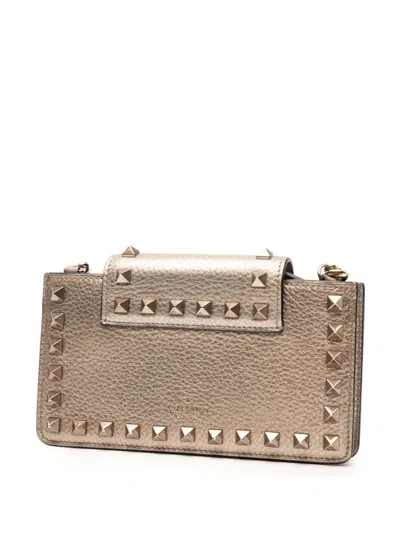 Pre-owned 2000-2025 Metallic Pebbled Calfskin Rockstud Phone Case With Chain Crossbody Bag In Gold
