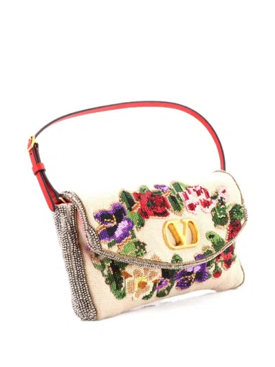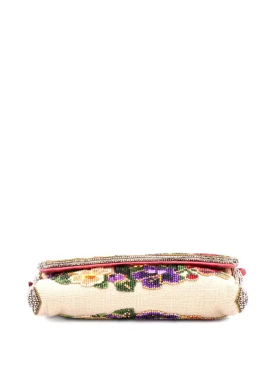 Pre-owned Vain Soft Top Handle Clutch Beaded Linen Satchel In Multi